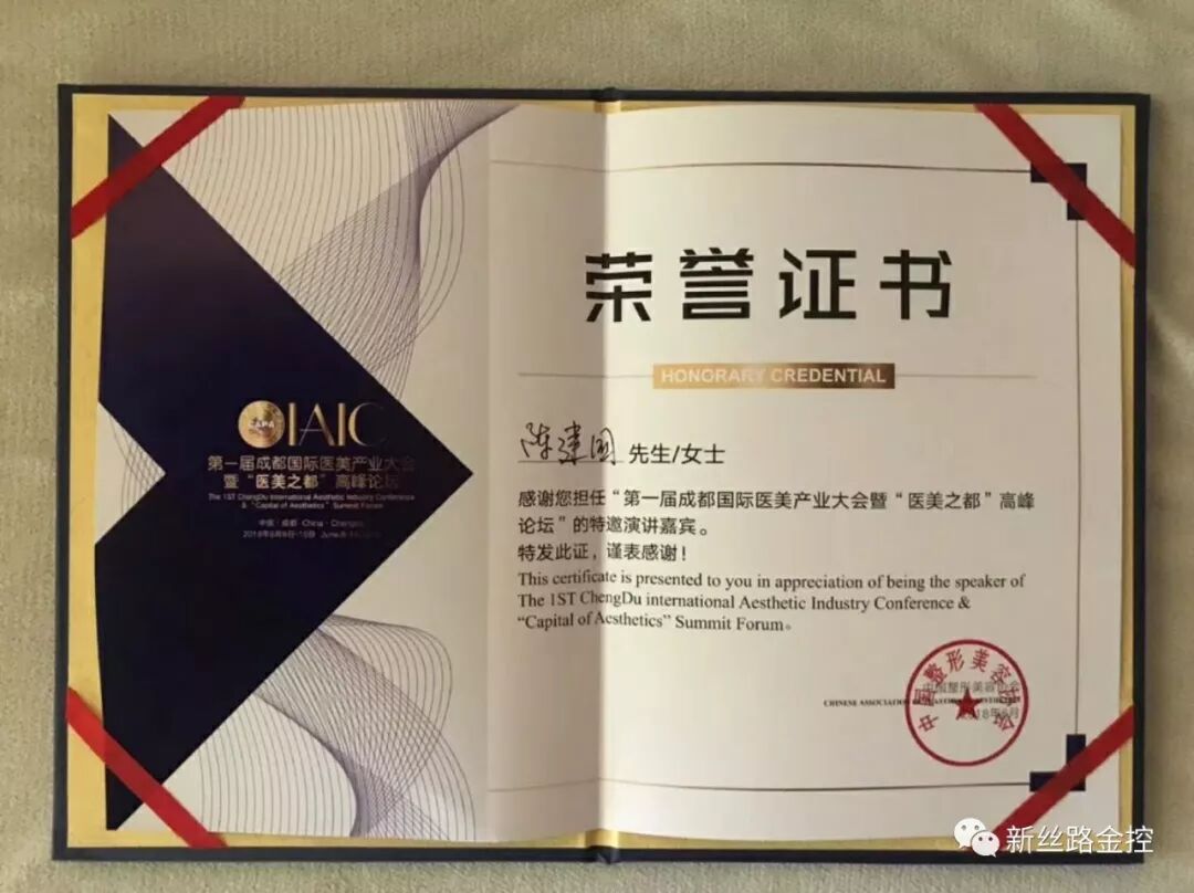 安美科创始人陈建国先生受邀参加第一届成都国际医美产业大会 ——新丝路金控优质项目追踪